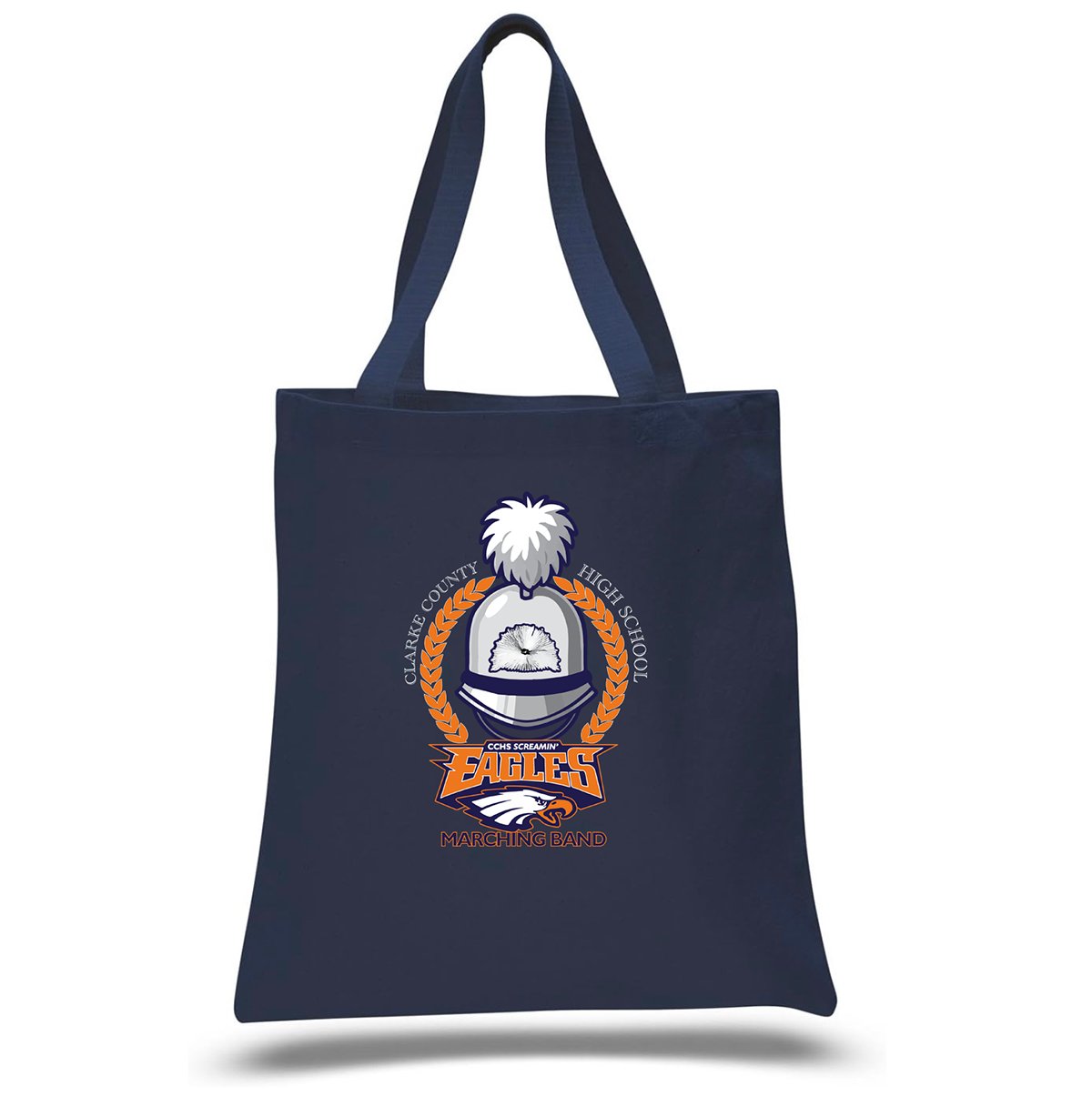Navy cotton tote bag. 9" handle, bag approx. 10"x12"